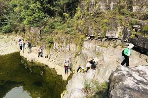走进静谧的琵琶河谷,这里的景色出乎想象的美,一个个或深或浅大小不一的水潭和形状不规则的沟槽,以及绝壁风光,冲击着人的视野,美得无法用语言来形容。有幸,我们在对的时间,与对的人,来到了对的地方,看到了峡谷原始的风景和美丽的风光,让人心旷神怡,忍不住想吼两声。