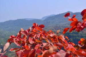 太行山小北顶红叶林,这里山势奇绝,植被茂密,金秋季节,漫山红叶,层林尽染,由于山岭海拔高度不同,红叶品种不同,红叶变红程度不一。
