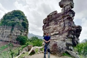 在原山寨旁边,有一山石,如飞来石一般,看起来像是人形,仿佛在眺望远方,从侧面看,仿佛又背着包,像是一徒步旅行者。