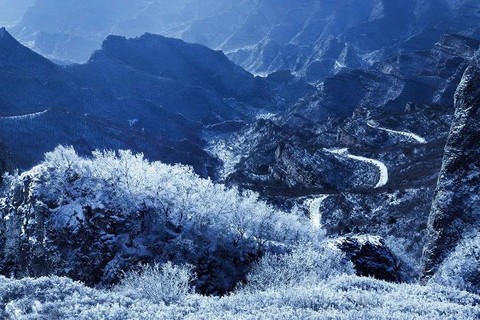 D2:太行关林梯-绝壁吊梯-梯头古村-鲁班天梯-黑缝冰洞-黑泉钢丝渡桥-绝壁崖-圣母湖-中寺天梯-望华峪-黄花神院 。全程13公里,拔高600米。