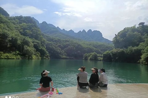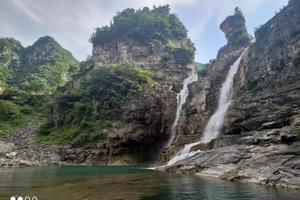 【目的地介绍】:窟窿山位于阳城蟒河镇蟒河大峡谷景区下游,因山腰有一天然孔洞,也叫孔山。下边有一水库为窟窿山水库,这里位于济源与阳城蟒河交界,四周大行群山环绕,高低参差不齐,奇峰林立,水库水如碧玉,山影倒入库面,有北方小桂林之美景。 进入夏季,窟窿山水库水位抬高,绿水溢过坝面,顺势流向下边几十米高的断崖,因中间一峰相间形成两股飞流直下的瀑布景观。沿小路顺峡谷而下,就可以进入济源蟒河水库。附近游人纷纷来此戏水打卡,成了人们休闲避暑好地方。