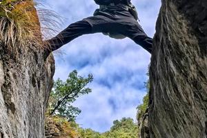 【目地地介绍】:琵琶河,原名底河,位于山西省陵川县夺火乡南部。大致呈“西南--东北”走向,下游近九十度转弯折向正南,在河南辉县西沟底端突然下降,跌入西沟,在此形成西沟大瀑布。南太行风光独特,群峰竞秀,沟壑纵横,千姿百态,惟妙惟肖,红石峡谷横亘,壁立千仞,磅礴大气。