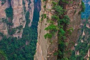 而往下望时,下面的天梯令人目眩,对面的孤峰玉树临风,背后的山脊摇摇欲坠,充满了野性的美。