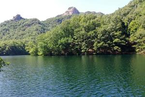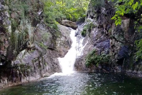 鲁山县鸳鸯潭位于四棵树乡,上游为深山区,地势陡峻、峰峦对峙,美景及植被美不胜收,绿树成荫的蜿蜒小道中,真是有种曲径通幽的味道。下游一路沿着河流而下,山美水美,沟谷纵横,溪流湍急,潭瀑成串,一步一景。