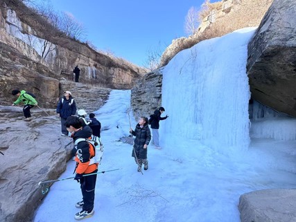 GPS约6-8公里,无拔高,无难度。老少皆宜新手小白可闭眼冲。赏冰挂-冰河-冰瀑-古村