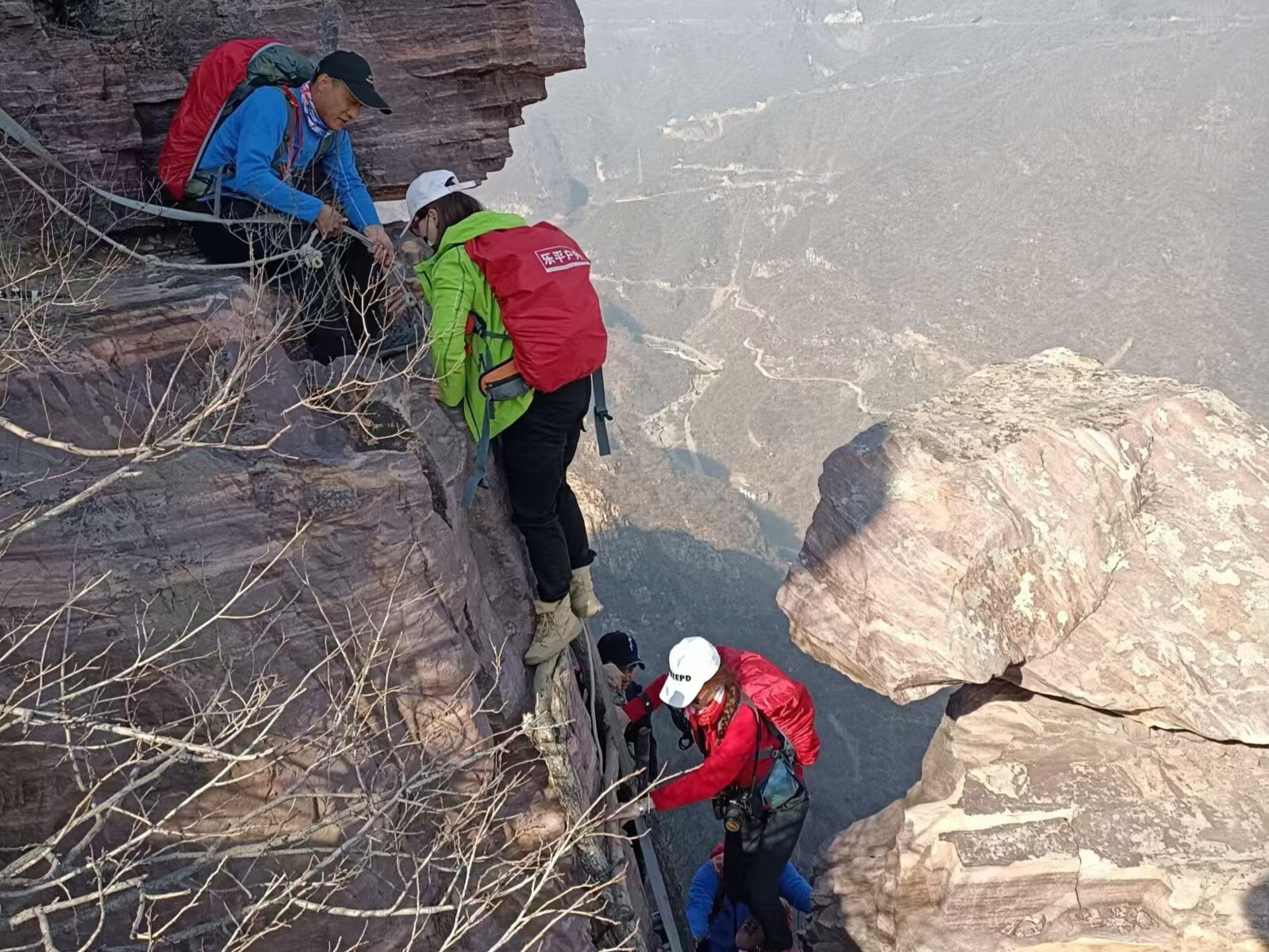 万丈梯位于关山景区侧,为南太行著名天梯,以前为山民所走,听其名字,就知道其险峻。万丈梯有一定的攀爬,快到顶时,有一处3米左右断层,可借助绳子。